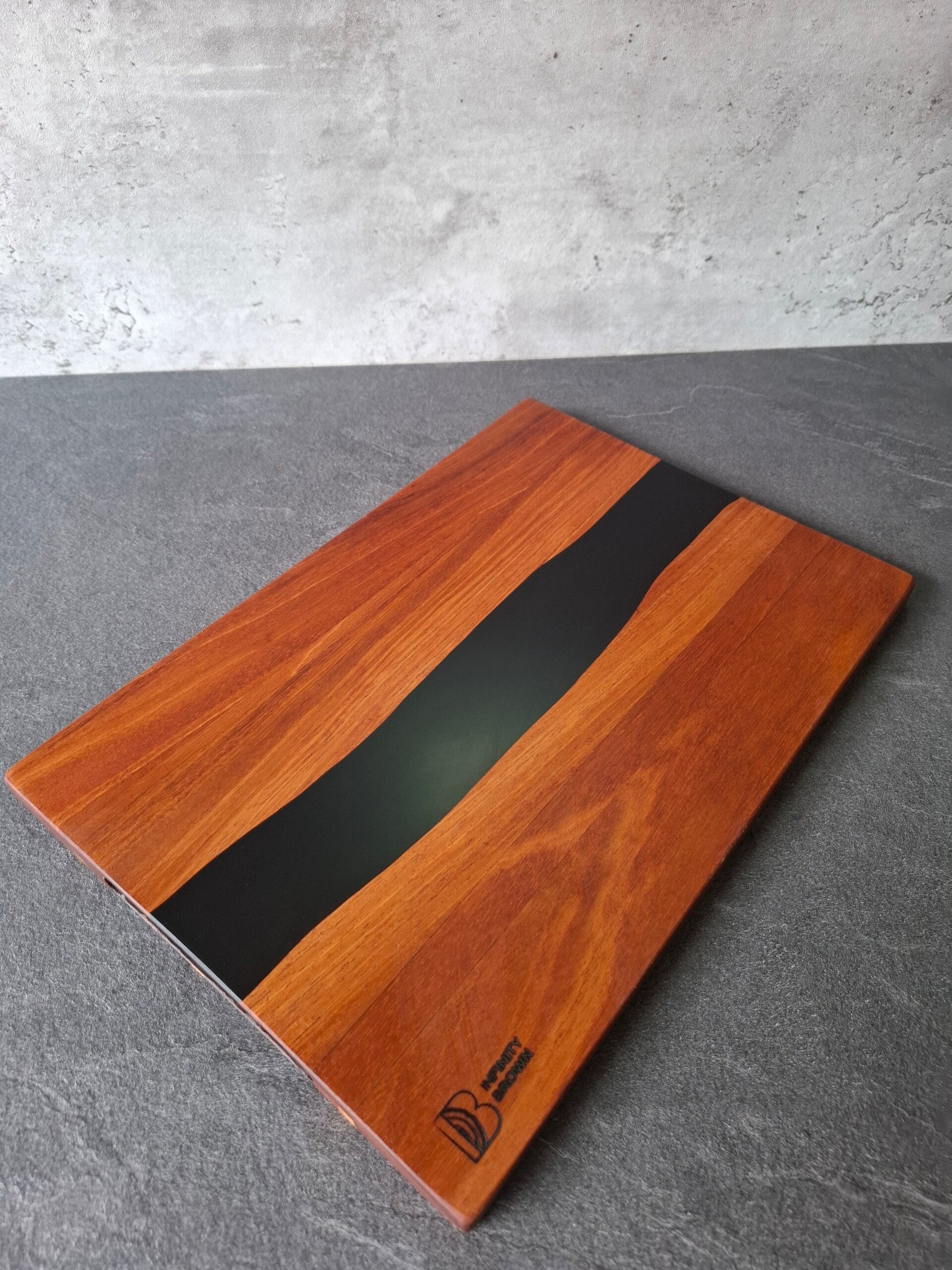 Cada pieza combina la calidez de la madera con la pureza del epoxi, creando una tabla única, moderna y llena de carácter.